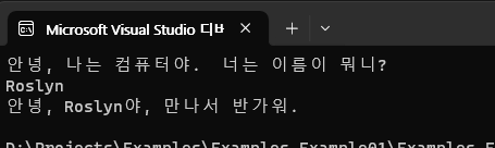 이번에는 Roslyn이란 이름을 입력하자, 원래대로 인삿말이 출력됩니다.